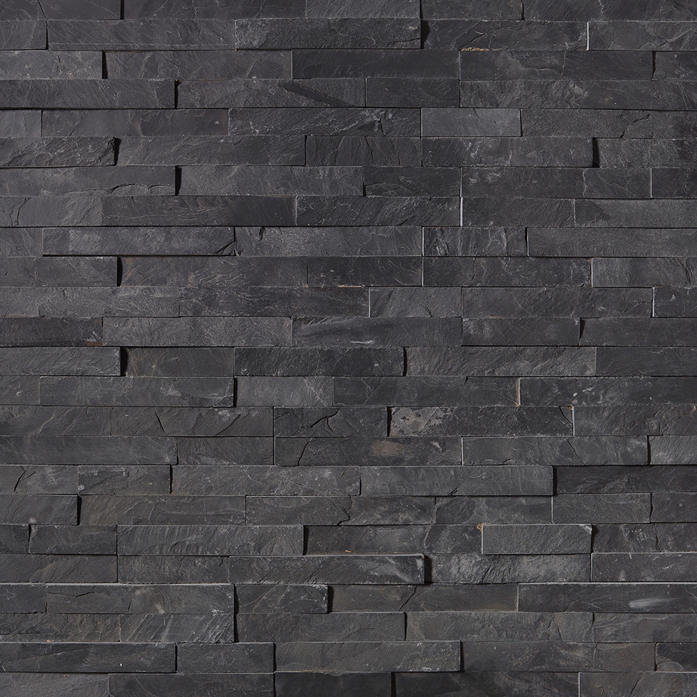 Splitface Stacked Stone panel is crafted from natural slate. Its stately black hues make a signature style statement that’s the essence of chic while its randomly set stones add depth and interest. Use this slate stacked stone panel to create sophisticated accent walls, backsplashes, fireplace surrounds, or to clad architectural features such as retaining walls. This exclusive Interlocking Z Feature ensures the panels fit together easily and no grout required. Achieving a seamless installation has never been easier. Corner pieces are available to give your project a finished look.