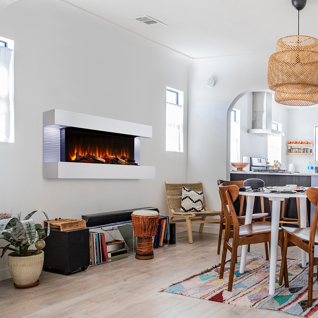 Create a modern aesthetic that acts as a fireplace and a piece of art with our SimpliFire Format electric fireplaces.