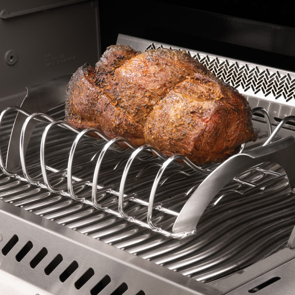 Napoleon PRO series stainless steel Rib and Roast Rack for the grill master in every household. Two great grilling products in one that fits all Napoleon grills and charcoal kettles. Ideal for ribs, roasts and chicken for convenience and even cooking. Also eliminates messy grill cleanup!