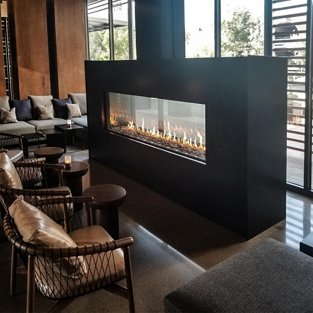 Take a look at some Enlight See Through completed projects and how the same fireplace can look entirely different by customizing with some of the unique available options and the different finishing materials chosen.