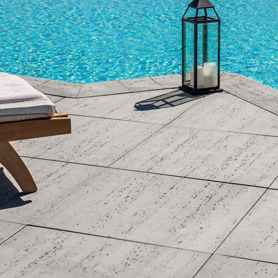 The Travertina Raw mimics the texture of natural travertine in a concrete material. This product line has enjoyed huge success and has now been improved with an ultra robust mix design, making it far more durable than the natural alternative. This is a perfect solution for use in winter climates. Techo-Bloc has now extended the collection to a double-sided, structural retaining wall system, two wall caps and pool coping in order to fulfill customer demand for this luxurious product.