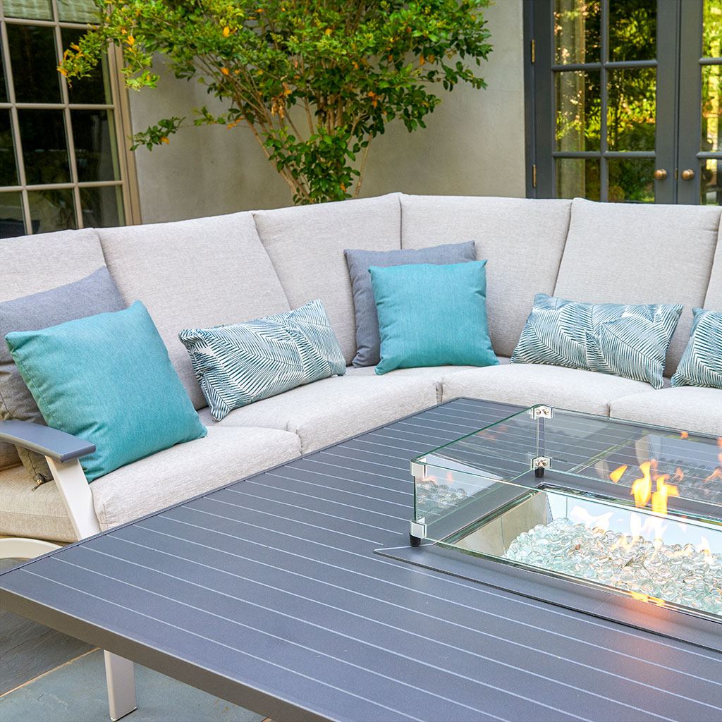 Telescope Casual’s Belle Isle cushioned sectional is the ultimate setup for outdoor lounging. With its sleek lines and deep, comfy cushions, this sectional brings a perfect mix of style and relaxation to your patio. Whether you’re stretching out solo or gathering with friends, it creates a cozy, inviting space that feels like an outdoor living room.