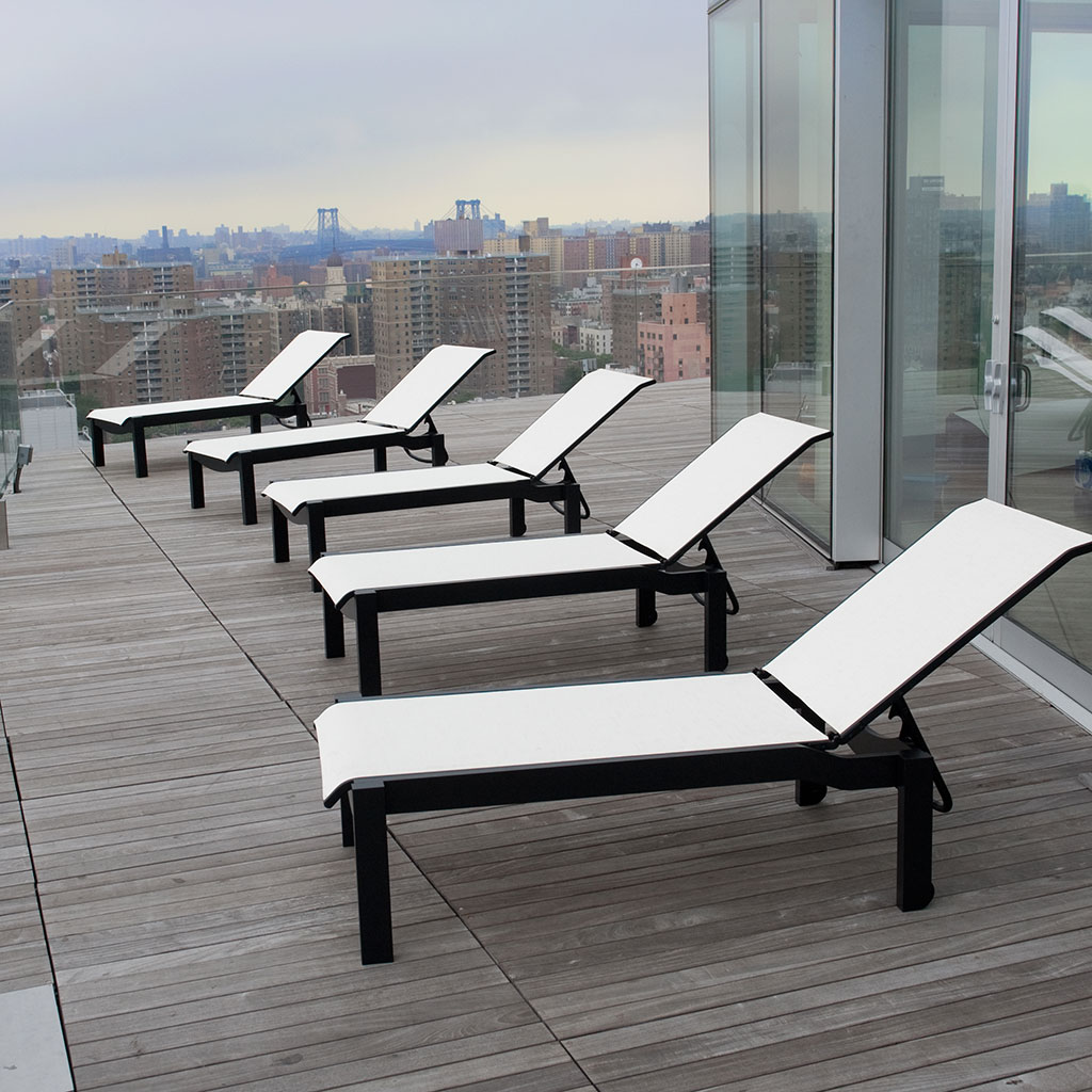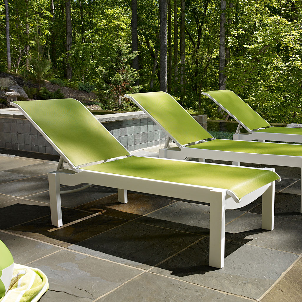 • Non-cushioned sling chaise lounge chairs