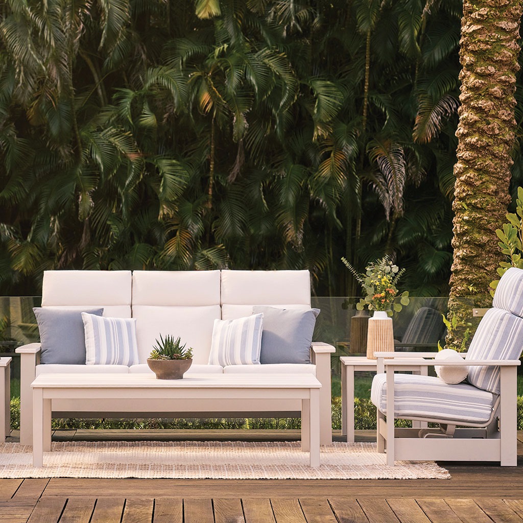 Make the most of outdoor living season with our plush and cozy Telescope Casual Leeward Lounge Set, made in the USA. Choose from swivel rocker chairs, sofas, loveseats and more to create your perfect patio set.