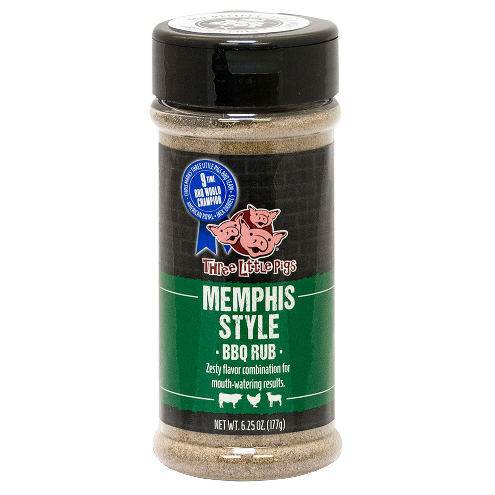 Three Little Pig’s BBQ Memphis Style BBQ Seasoning was developed for beef, chicken and is especially good on brisket, thick steaks, prime rib, ribs, tri tip,pork ribs whole chicken. This Memphis Style Seasoning works well on a very hot grill or smoker, since it has little sugar. Memphis Style gets its distinctive flavor from a healthy dose of fresh ground black, white, and red pepper topped off with a hit of Worcestershire powder, coarse kosher salt, and other spices. Memphis Style is a natural on hamburgers and pork chops and makes a great table condiment when you desire to create an extra peppery flavor.